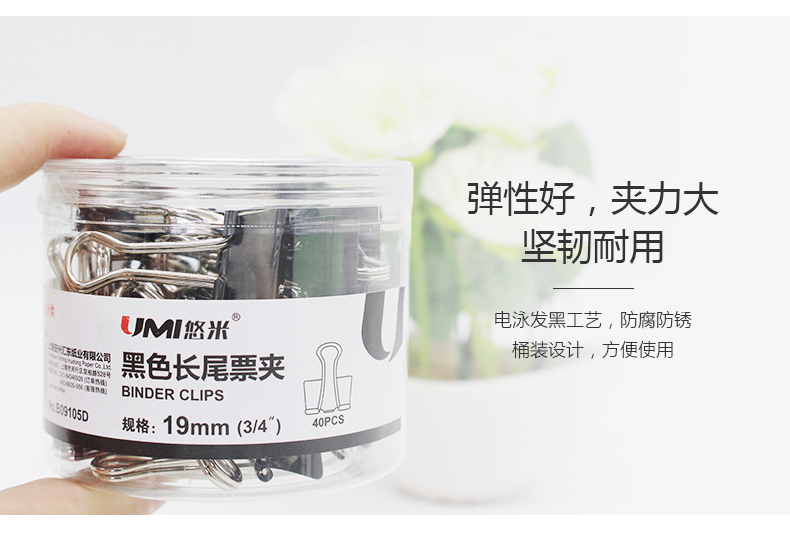 当前位置:首页 > 办公及体育用品用品-文件管理用品-票夹 > 悠米 2# (41mm)黑色长尾票夹(筒装) B09102D 黑 36筒/大包