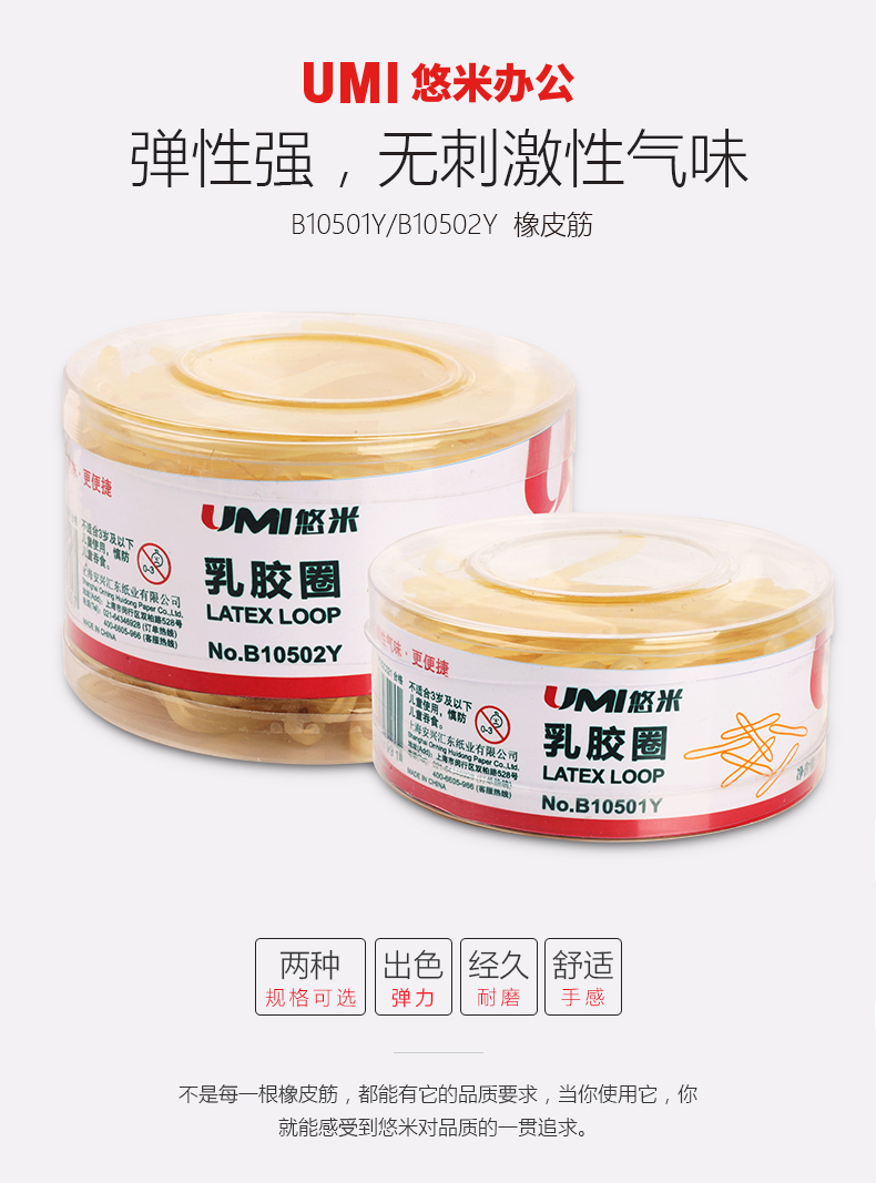 天然乳胶,无刺激性气味。柔韧性好,反复拉伸不易断。采用优质材质,手感舒适。外观经典桶装设计,简约实用,方便归纳。