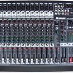 基本功能:♦超低噪音;♦设计有12路通道输入(8路Mic+2组立体声)♦2辅助发送/返回,2主通道/2编组输出;♦每声道均设有2个辅助发送端: 1个可切换的推子前/推子后信号的选择,用于监听/效果的; 1个推子后信号(用于内置效果或可用来当作外部发送端);♦7段图示均衡器,优化音乐表现和调整室内声学参数;♦12段精准电平显示;♦48V幻像电源供应;♦极低的失真,宽增益演范围的无噪声前置放大器,极高动态响应和频率特性;♦纯正的3段均衡器,准确的音乐控制能力;♦24bit,40kHz采样的DSP数字效果处理器,16种效果,每种参数可调;♦MP3播放/录音器,兼容多音频格式,SD/USB接口,优秀的音质和简洁的人机交流界面;♦高品质高精度的60mm行程推子,精密地调节通道的匹配电平;