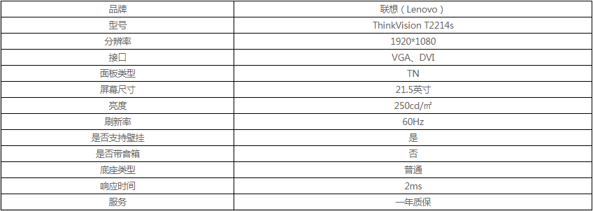 联想(Lenovo)ThinkVision T2214s 液晶显示器 21.5英寸