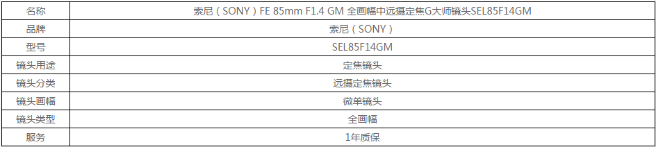 索尼(SONY)FE 85mm F1.4 GM 全画幅中远摄定焦G大师镜头SEL85F14GM