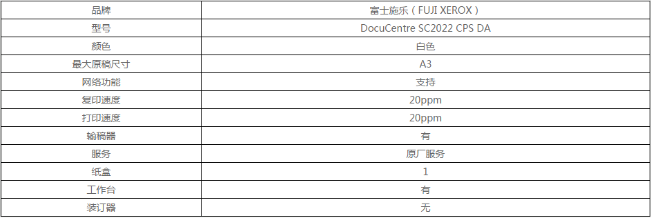 富士施乐 (Fuji Xerox) DocuCentre SC2022 CPS DA A3彩色激光复印机 含输稿器+单纸盒+第三方工作台