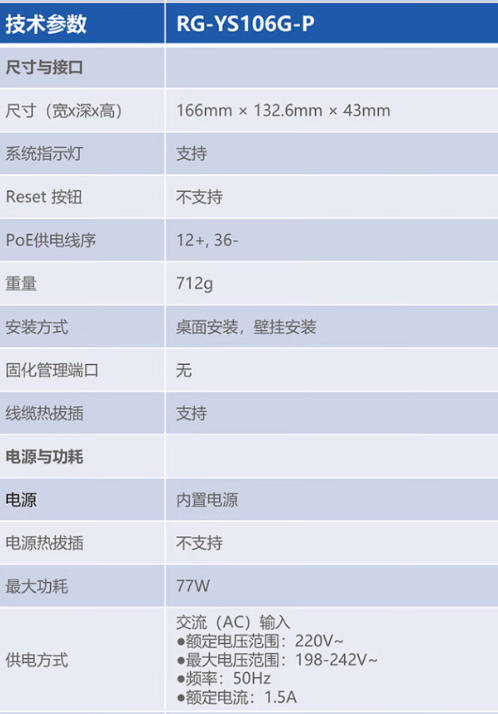 当前位置:首页 > 通用办公设备-网络设备-交换机 > 锐捷6口干兆PoE监控交换机RG-YS106G-P PoE功率60W 满载摄像头双上联接口企业园区安防监控交换