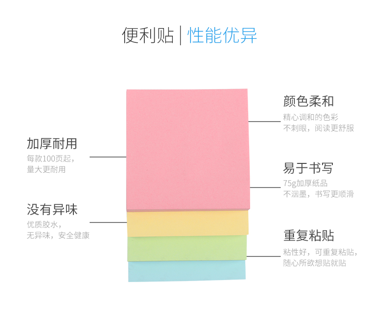 颜色柔和,易于书写。重复粘贴,加厚耐用。款式多样,多色可选。