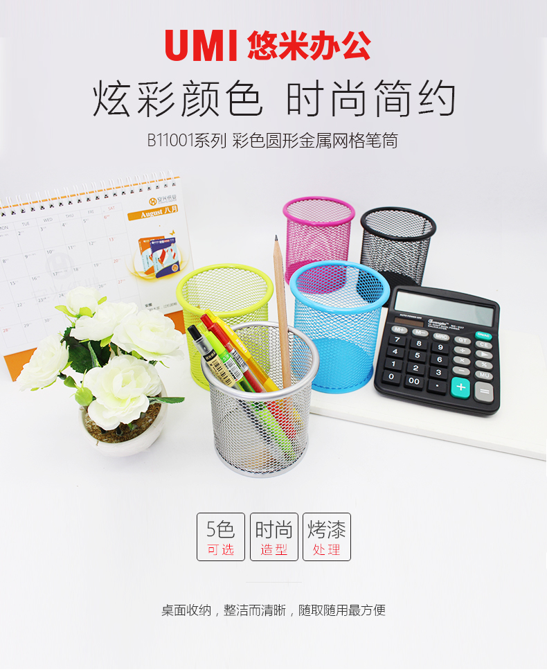 当前位置:首页 > 办公及体育用品用品-桌面用品-笔筒 > 悠米 彩色圆形金属网格笔筒 B11001D 黑 96个/大包