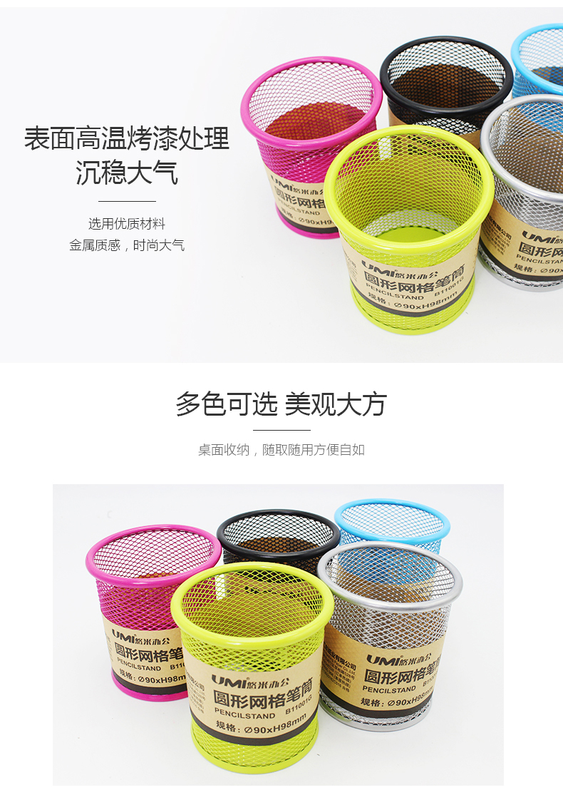 悠米 彩色圆形金属网格笔筒 B11001G 绿 96个/大包