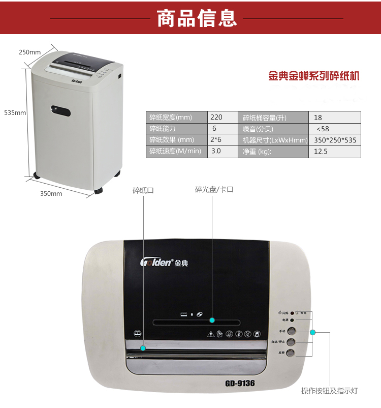 当前位置:首页 > 通用办公设备-其他办公设备-碎纸机 > 山西金典办公碎纸机GD-9136