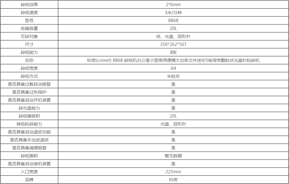 当前位置:首页 > 通用办公设备-其他办公设备-碎纸机 > 科密(comet) 8868 碎纸机办公室小型商用便携大功率文件迷你5级保密颗粒状光盘针粉碎机